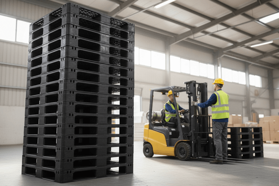 Fabricadas en HDPE 100% reciclado para trabajos pesados, soportan cargas estáticas de hasta 9,000 kgs e incrementan la seguridad en almacén.
