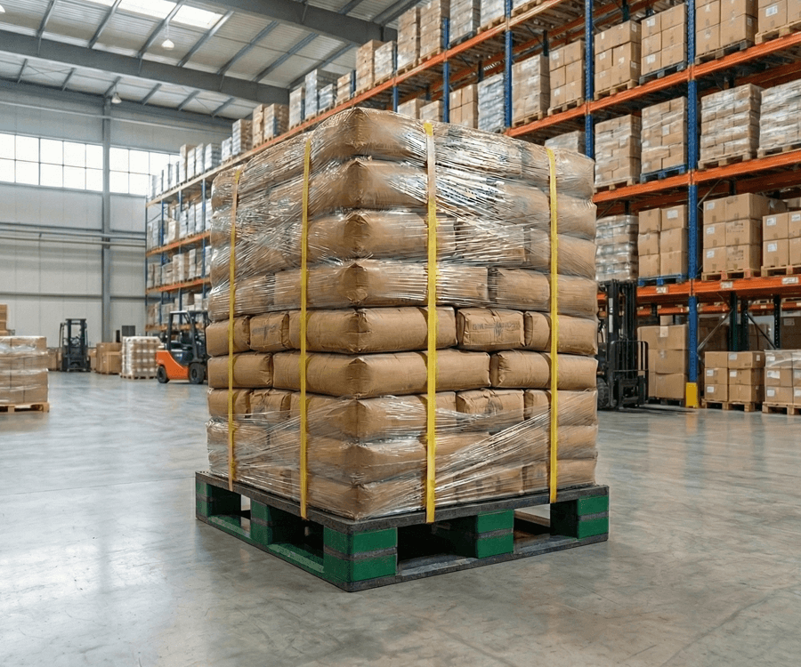 - Eco Tarima Cementera: Diseñada específicamente para soportar el peso y la abrasión de los sacos de cemento. Su superficie lisa y sin clavos evita roturas y mermas de material valioso (cemento, cal, yeso) durante la estiba.