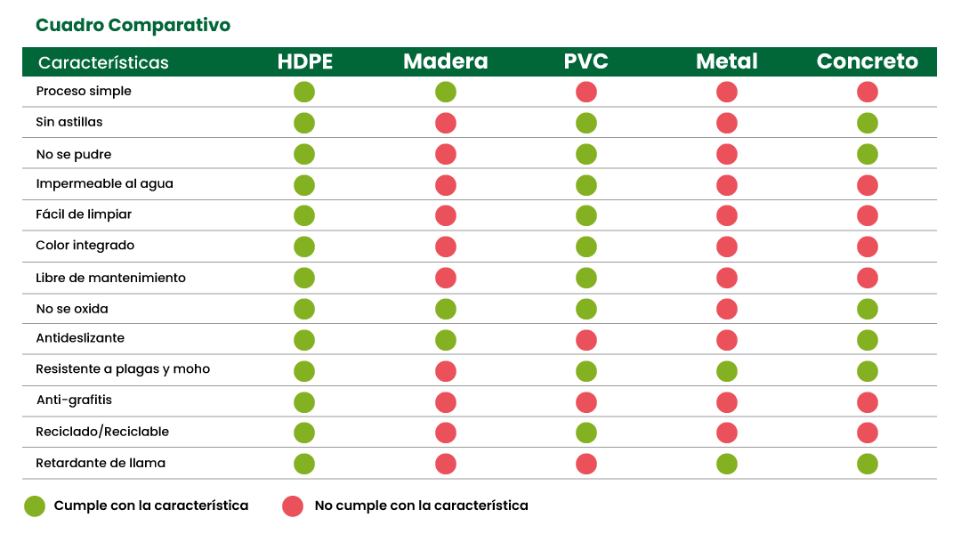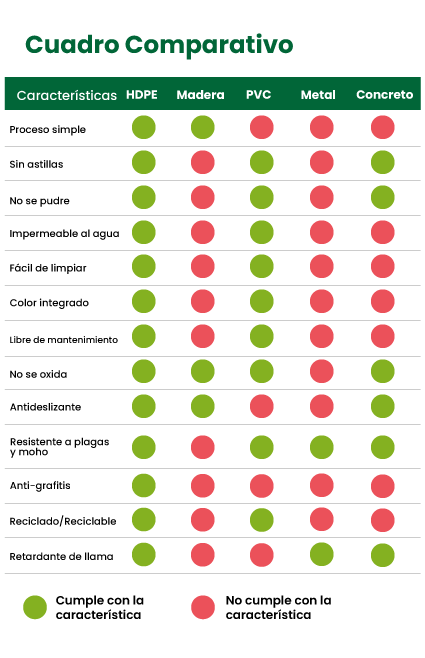 HDPE, o polietileno de alta densidad, que se usa comúnmente en productos de madera plástica reciclada, ofrece beneficios significativos tanto para clientes como para usuarios.